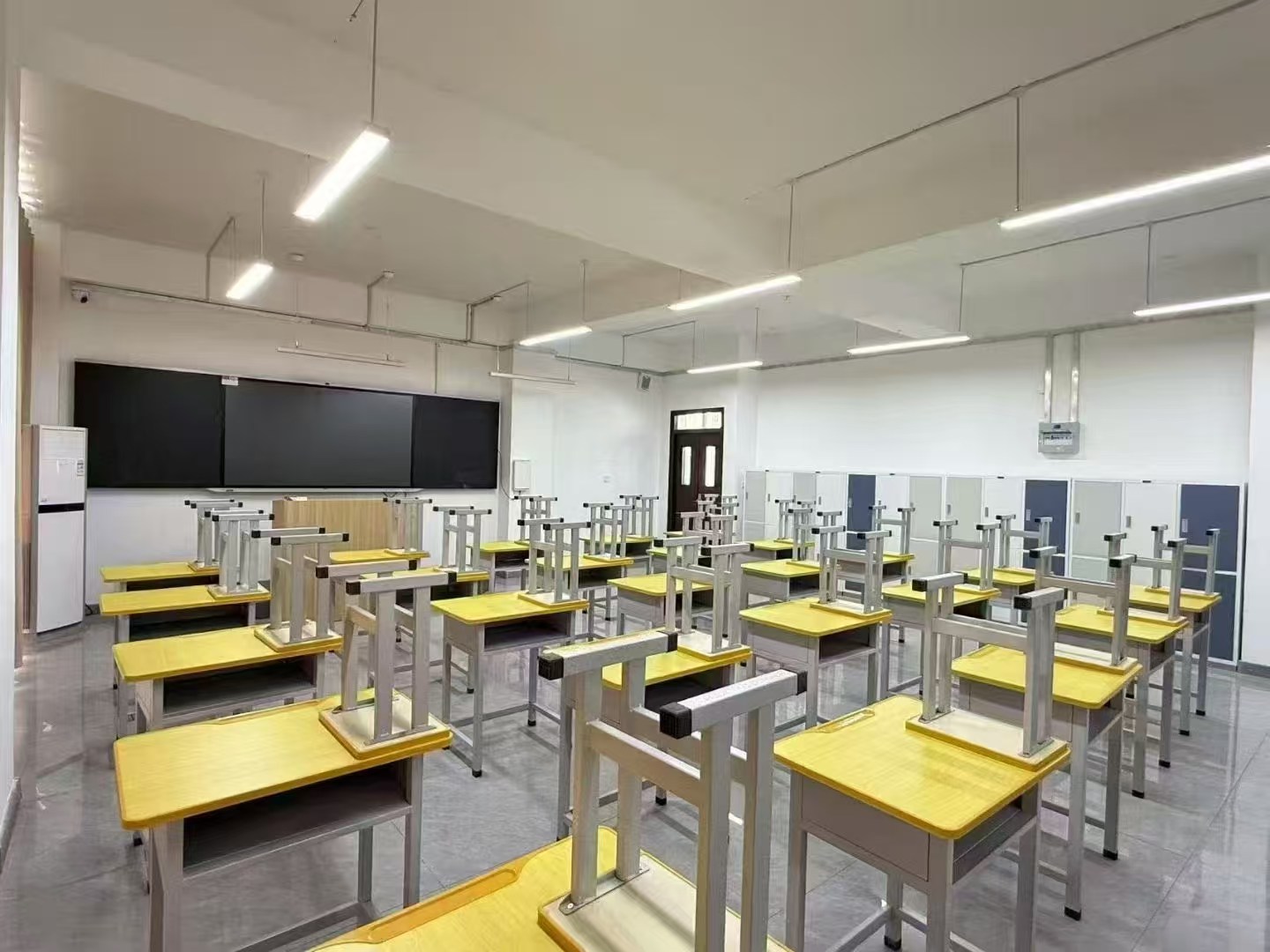 教室采用25人单人单桌每生配备有独立书柜,每生配备有专属AI记单词账号,多媒体智能化教室,帮助学生更好的掌握英语所学单词,环境大方整洁,在学习中感受舒适与便捷。